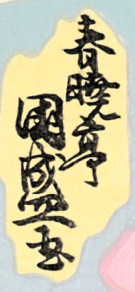 also known as: Baidō (梅堂), Baidō (楳堂), Eikyū (栄久), Hōsai (豊斎), Kōchōrō (香朝楼), Kunimasa (国まさ), Kunimasa IV (国政), Kunisada III (国貞), Toyokuni V (豊国)